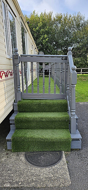 Outside, the full-length wooden decking with gate which makes it enclosed.