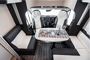 Get the five star hotel feeling in the Zefiro 696 which is based upon a 2025 Ford Chassis with Automatic gearbox. A rear island bed with underbed storage, bedside tables and two wardrobes all closed off by a door give a level of privacy and peacefulness normally only ever dreamed of when away in a hotel. Just in front of this you’ll discover the domestic style shower cubicle separate from the remainder of the bathroom. The popular L-shaped lounge area, creates seating for up to five people during the day, offering a homely space for relaxing and entertaining. Come night-time, a second double bed from the delicate body curves of the Zefiro 696 lowers down above the lounge using a smooth, electric mechanism. Whilst the 5th birth is a make up bed under the drop down.
