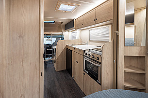 At the rear of the motorhome is a private bedroom with island bed and spacious wardrobes for your clothing.