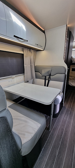 The motorhome is equipped with WC, shower, cooker, fridge freezer and lots of lighting including floor led's.