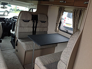 This motorhome provides luxury 6 berth accommodation, two adults/four children or four adults only. it has a double dinette with 4 seatbelts with sofa opposite and makes a double bed, with double electric bed above, rear lounge which makes a double bed. The middle kitchen comprises of cooker, hob oven, grille, microwave and 3-way fridge/freezer. The bathroom benefits from a shower, sink and cassette toilet. This motorhome has mains electricity connection, electric & gas heating and hot water, blinds and fly-screens. It has 6 belted seats and has good storage under seats in the rear lounge. Rear bike-rack for four, cab air-con, cruise control and solar panel.