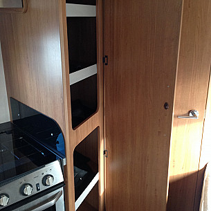 This motorhome provides luxury 4 berth accommodation with front lounge, with driver and passenger swivel seats. Large double bed above cab and a french rear double bed. The centre kitchen comprises of cooker, hob, oven, grille, microwave and 3-way fridge/freezer. The bathroom benefits from a separate shower, sink and cassette toilet. This motorhome has mains electricity connection, electric & gas heating and hot water, blinds and fly-screens. It has 4 belted seats and has good storage in under french bed. Rear bike-rack for four, cab air-con cruise control and solar panel.